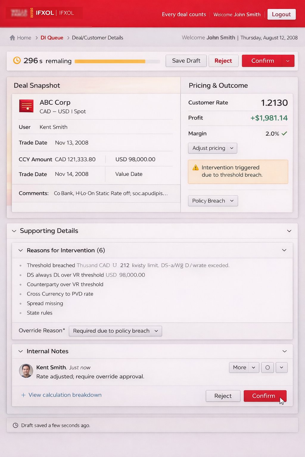 Improving task efficiency for frequent usersI designed and refined task-driven workflows for critical FX operations, minimizing unnecessary steps, optimizing screen flow, and prioritizing high-value actions. The focus was on enabling expert users to complete transactions faster without compromising accuracy or control.